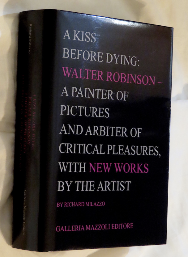 On the occasion of this museum-worthy exhibition, Walter Robinson: New Paintings and Works on Paper, 2013-2020, with 15 large new paintings, including Robinson’s masterful Grand Guignol of a painting, Pulp Romance, and dramatic images of American hamburgers, beer, cigarettes, lovers, painkillers, dolls, Pinocchio, Warholian stacks of money, even a Massimo Bottura salad and a Ferrari race car at the head of the pack, Galleria Mazzoli Editore has published the monograph A Kiss Before Dying: Walter Robinson – A Painter of Pictures and Arbiter of Critical Pleasures by Richard Milazzo, with an Italian translation by Ginevra Quadrio Curzio. It is the first major monograph on this important American artist and critical voice. The book documents fifty years of his work, beginning in the 1970s and during the revolutionary heydays of the East Village, tracking his ubiquitous presence right through millennium and continuing to this day.